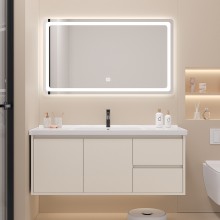 智能奶油陶瓷一體盆衛(wèi)生間浴室柜鏡柜組合輕奢簡(jiǎn)約洗手臉盆洗漱臺(tái)
